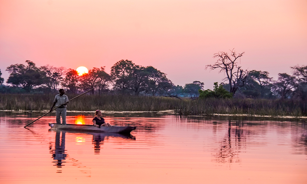 Okavango i Botswana er verdens mest unike innlandsdelta, der vannet renner fra høylandet i Angola og til slutt sildrer ned i Kalahariørkenens tørste sand. Øyene i deltaet byr på et yrende dyreliv med elefanter, løver, sjiraffer, neshorn og bøfler. Vannet skjuler krokodiller og store flokker med flodhest. Den beste måten å se dette dyrelivet på, er i en mokuru – en tradisjonell kano. Mokuruen glir lydløst gjennom det stille vannet og stoppes bare av hvite vannlinjer og høyt siv. Botswana er fint for den som vil kombinere det gode liv med spennende safari – av skyhøy kvalitet. Dette er safari for den kresne, og balsam for sjelen.