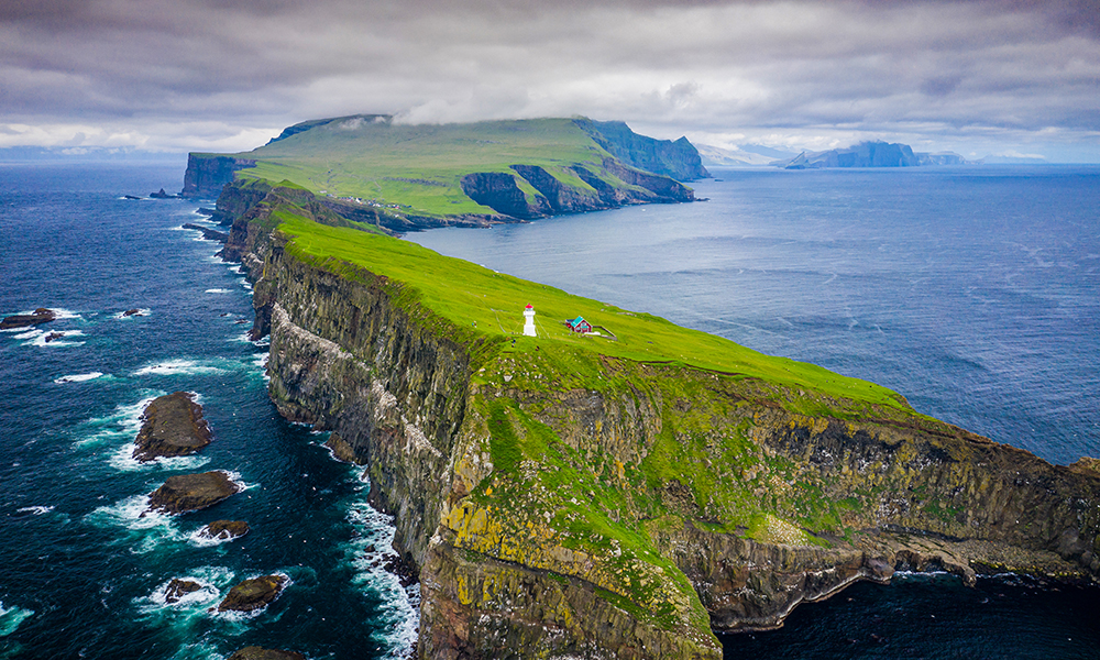 Midt mellom Island og Norge, rett nord for Skottland, ligger Europas kanskje minst tilgjengelige turistdestinasjon. Men det er ikke en grunn til å droppe turen hit, snarere tvert imot. Med gresskledde hus, en dramatisk kystlinje, stupbratte klipper, utallige lundefugler og vakre fossefall er den grønne smaragden ute i Atlanterhavet i all hovedsak én stor foto-mulighet. Mulafossur er den mest kjente fossen, og ser ut som noe fra et eventyr der den ramler ut over en irrgrønn klippe på Vagarøya og buldrer i havet nedenfor, med de grønne åsene ved Gásadalur som billedvennlig bakteppe.