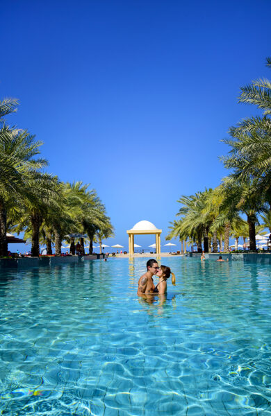 Italienske Matteo Casabianco og Emma Fenzi har tatt noen dager fri fra jobbene i Dubai og kommet til Ras al Khaimah for å slappe av i litt mindre hektiske omgivelser. Nå nyter de livet og pleier kjærligheten i bassenget ved Hilton hotell nesten i sentrum av byen.