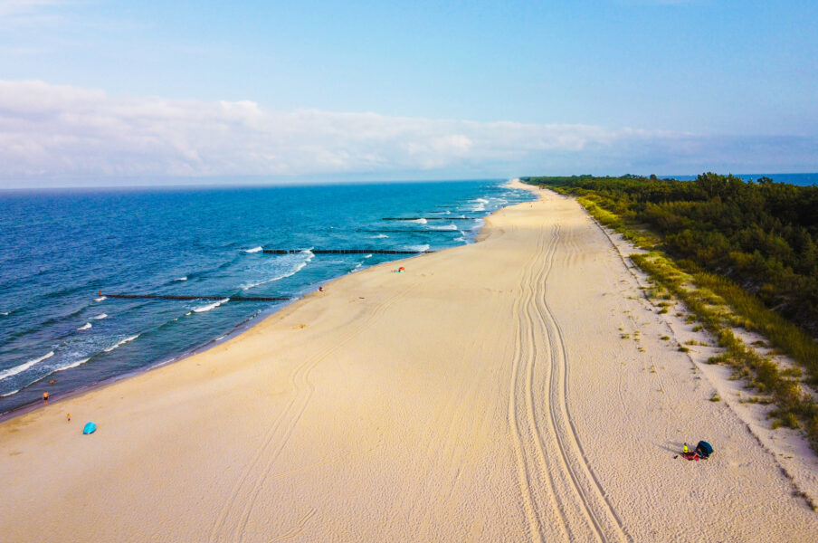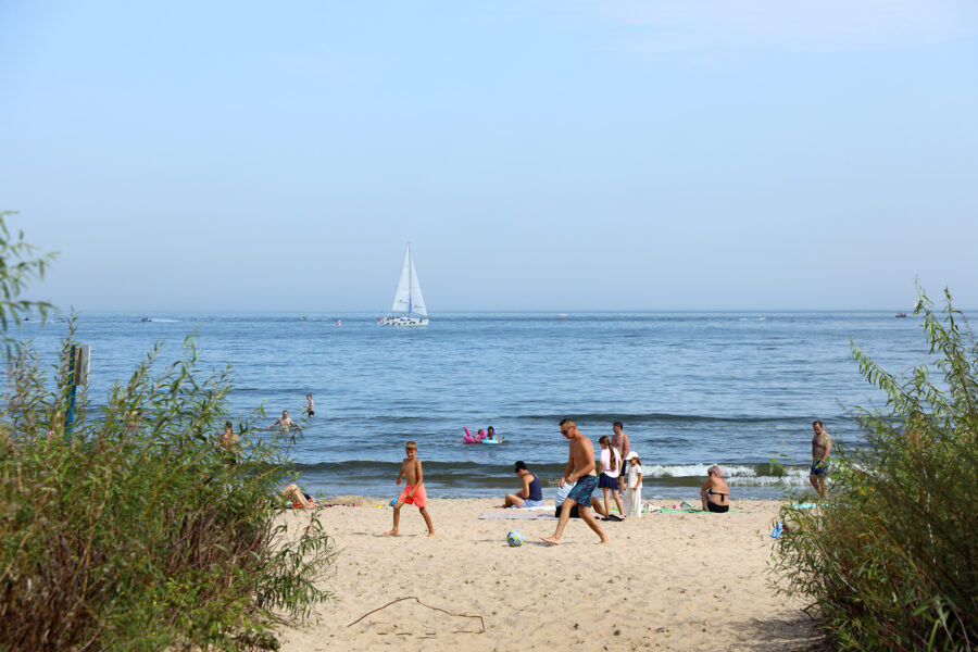 Det er mørkt da jeg tråkker videre til kveldens hvilested og ladestasjon. Men så fort sola våkner opp igjen er det lett å skjønne hva Anna og Piotr mener med «eksotisk». Et steinkast fra hotellet henger de unge og hippe på trendy strandbarer hvor pastellfargede sofaer og røff design gir fornemmelser til Ibiza heller enn trauste Østersjøen. Stranda strekker seg milevis i begge retninger. Jastarnia er omtrent midt på halvøya, og ikke en dårlig base for den som helst tilbringer ferienettene på samme sted. Jeg tråkker videre forbi campingplasser, via «Instagram-husker» ute i vannet, padlebrett og kajakker til utleie, og halvannen mil videre ut til byen Hel. Dette er halvøyas turistsentrum, og en attraksjon på godt og vondt, spekket med restauranter, suvenirbutikker og barer. Her blir det folksomt i høysesong, men om du trives best utenfor tråkket er noen av halvøyas heftigste strender en kort spasertur gjennom skogen og mot øst.