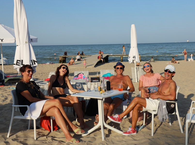 Veien slutter, men eventyret fortsetter. Reisen til Nord-Polen med surfebrett og sykkel avsluttes på tuppen av Hel. Jeg leverer sykkelen på avtalt sted og tar siste etappe over bukta med båt fra havna i Hel. Vel framme i Sopot får reisen en ny dimensjon. Denne delen av landet er kjent som «Polens Riviera», noe som er langt mer enn et flåsete munnhell. Helt siden starten av 1800-tallet har Sopot vært et yndet sted for sommerferie i sus og dus, mens de mest ærverdige bygningene stammer fra regionen «belle epoque» i mellomkrigstiden. Spahotellene lokker fortsatt med velvære ved kysten, og etter at Polen var medarrangør av fotball-EM i 2012 fikk også infrastrukturen en boost. Sopot lever fortsatt litt i skyggen av hansabyen og turistfavoritten Gdansk, men som reisemål på varme sommerdager er den i en egen klasse. Restaurantene holder internasjonalt snitt, mens cocktailbarene i strandkanten leverer varene for strandløver på jakt etter en god fest. Jeg kommer i prat med en lokal og godt voksen vennegjeng nede på stranda.