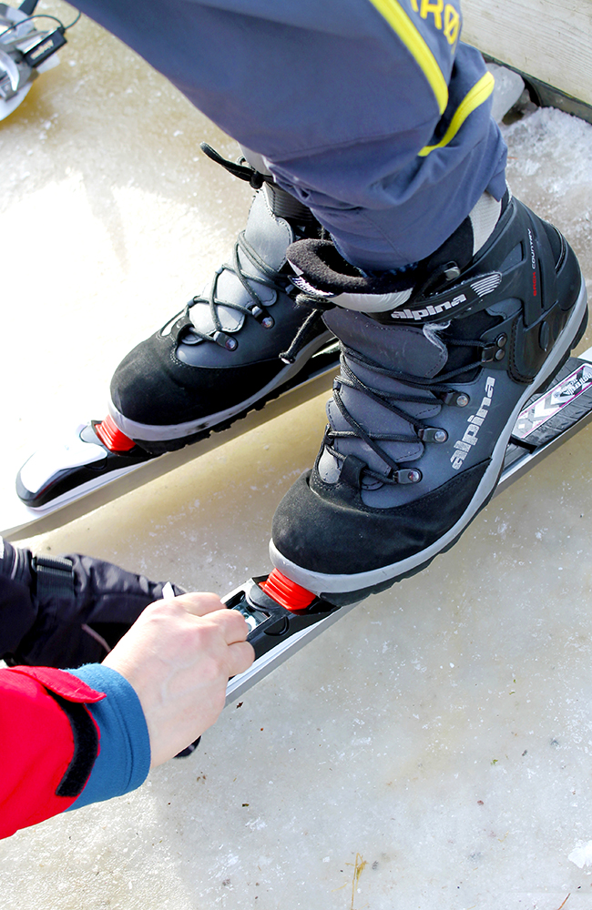 Skøytene klikkes på akkurat som bindingen på ski, og det føles mye mer behagelig enn skøytene vi minnes fra barndommen. Men for nybegynnerne blant oss blir de første meterne på isen litt ustø. Her skal du helst ha bøy i knærne, sideforflytning og fart – alt på én gang.