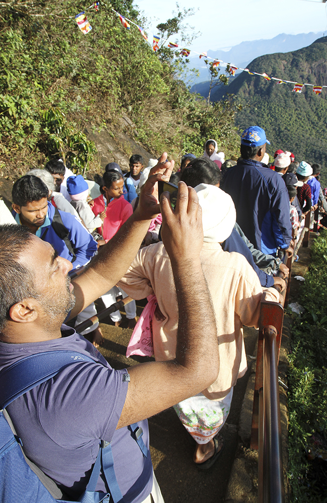 Adam´s Peak byr altså på et tverrsnitt av øyas samfunn og religioner. Unge og gamle, damer som menn, i en harmonisk miks av pilegrimer med felles mål. På de travleste dagene kan over 100 000 mennesker gå opp og ned, de fleste i løpet av natta og tidlig morgen for å unngå den verste varmen.