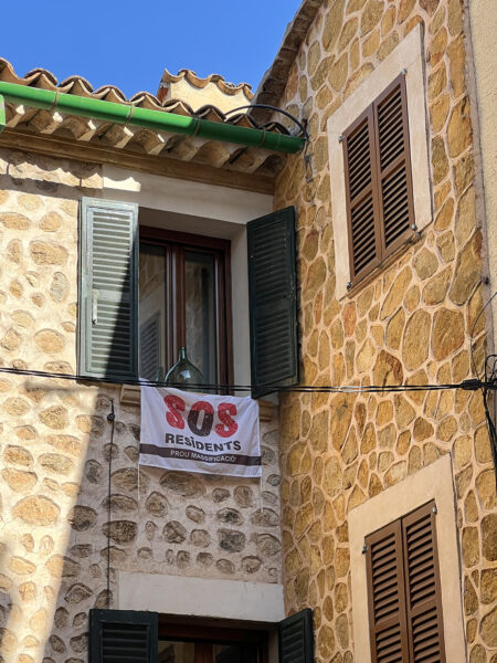 Mange lokale har sett seg lei av alle turistene. Og ikke minst de høye boligprisene som mye skyldes oppkjøp av leiligheter som leies ut til turister – det samme problemet som Barcelona og andre turisttette steder sliter med. Over alt henger bannere med SOS Residents.