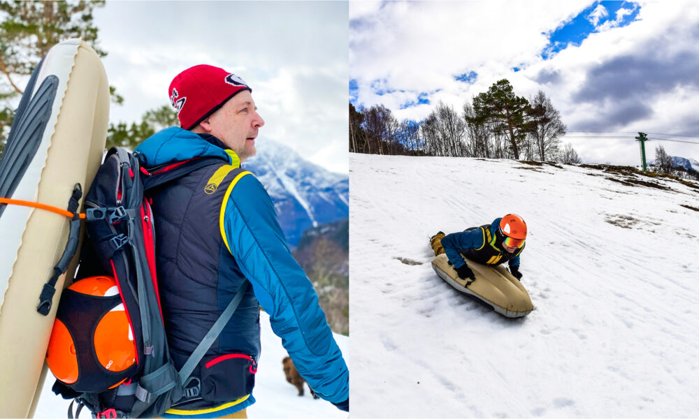 Det var han som introduserte sporten i Norge for over ti år siden, da han begynte å importere de første luftbrettene til Norge, laget av en sveitser som er spesialist på nettopp det. For i både Sveits og Tyskland er airboarding faktisk en stor sport. Airboard er rett og slett et oppblåsbart akebrett, der du holder deg fast i to håndtak foran og setter utfor bakken – med hodet først. Brettet styres med kroppsvekten, så det kan ta et par runder å komme inn i teknikken.