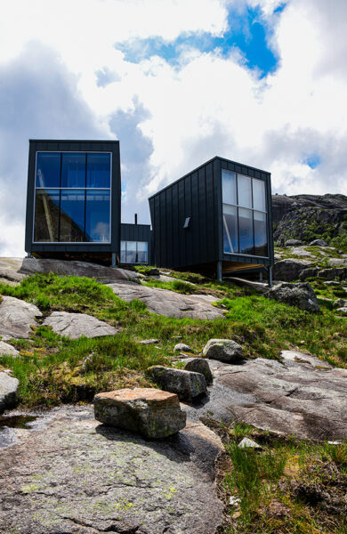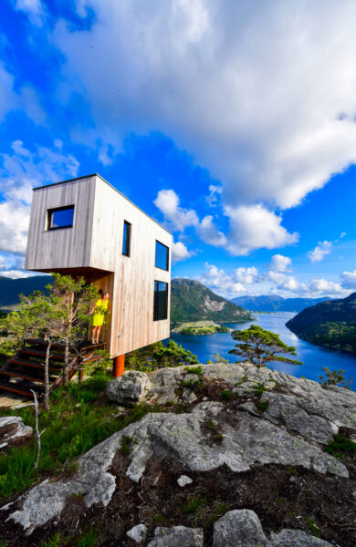 Som en fugl vagler den rektangulære hytta på kanten av et stup, 600 meter over Lysefjorden, med utsikt mot Lysefjordbrua i den ene retningen og innover fjorden i den andre. Det unike overnattings­alternativet The Bolder er et fint sted å få oversikt over Rogalands mest dramatiske og attraktive fjordarm – den 42 kilometer lange og 422 meter dype Lysefjorden.