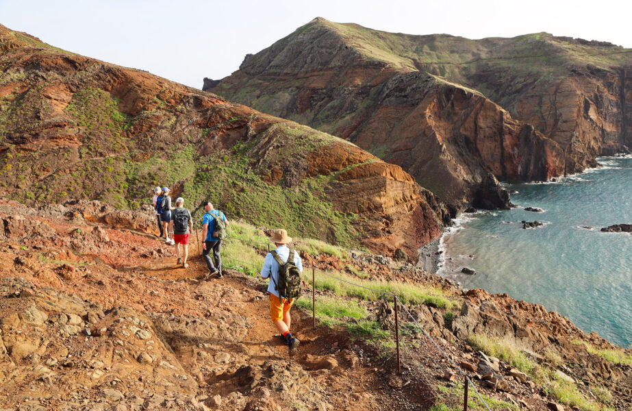 Den sju kilometer lange turen fram og tilbake langs PR8 Vereda da Ponta de São Lourençoer ganske utypisk for vandringer her på øya. Selv om dette er en veldig populær fottur, gjør det åpne landskapet at det aldri føles spesielt folksomt. Det er som å vandre ut mot havet. Det er bratte fjell og luftige klipper i alle retninger, og selv om det ikke er en veldig krevende tur, så gjelder det å tråkke varsomt. Hold dessuten utkikk etter både sel, delfiner og hval – nærmere storhavet kommer du ikke på Madeira uten å dra ut i båt. Følg den tilrettelagte stien et par kilometer utover halvøya. Her er kafeen Casa do Sardinha midt mellom palmetrærne et fristende stopp, men vi anbefaler å gå helt ut til stiens slutt ytterligere en kilometer opp en bratt fjellside, og heller ta rasten på vei tilbake igjen. Det er ingen skygge underveis, så husk solkrem – og gode sko.