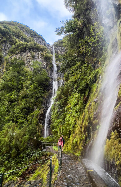 Frodige Madeira har en rekke flotte fossefall, som ofte er lett tilgjengelig langs de gamle vannlederne – levadaene. Men har det regnet mye, som da vi gikk, bruser én stor foss ut fra midten og de 25 fossene ser ut som en. Uansett er det stien inn som er mest spektakulær der den går langs gamle, mosegrodde levadaer og under krokete trær som buer seg over stien som en tunell. Bli ikke overrasket om Gollum dukker opp – det hele er som hentet ut av universet fra Ringenes herre. Har du husket badedrakt? Da er det bare å dyppe seg i det friske vannet.