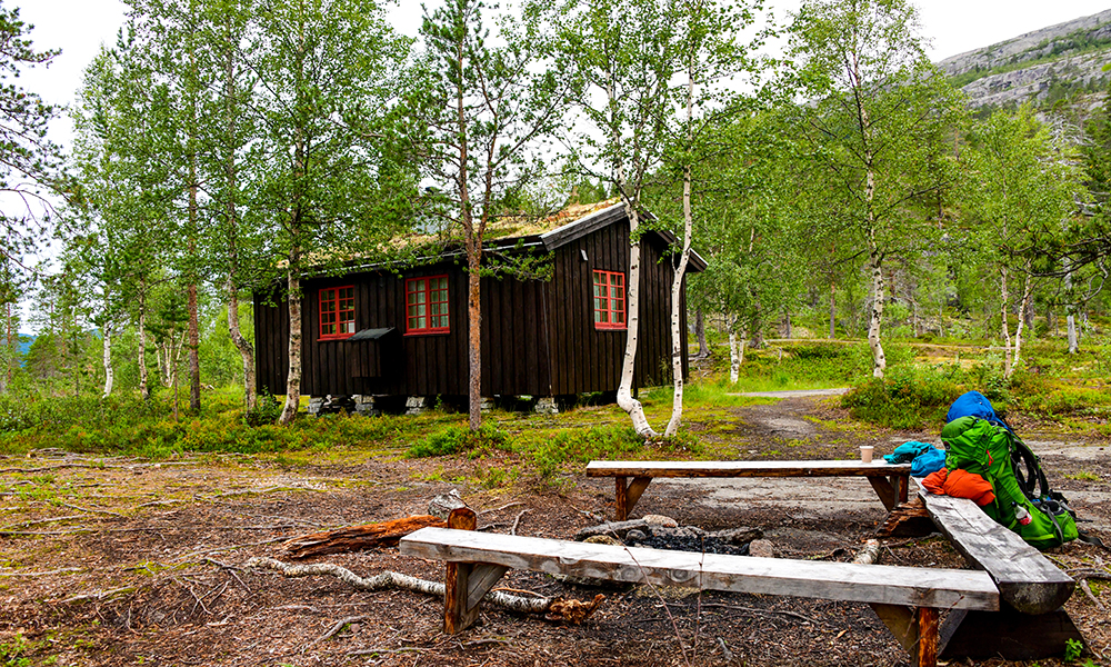 Og de skal få helt rett. Denne første dagen har vi ikke sett en sjel, før vi banker på døra til Statskog sin åpne bu ved Storskogvatnet, i håp om at ingen andre har kommet før oss og vi kan låne hytta. For sånn er Statskog sin ordning – de åpne buene er tilgjengelig og gratis for alle, det er bare førstemann til mølla.
