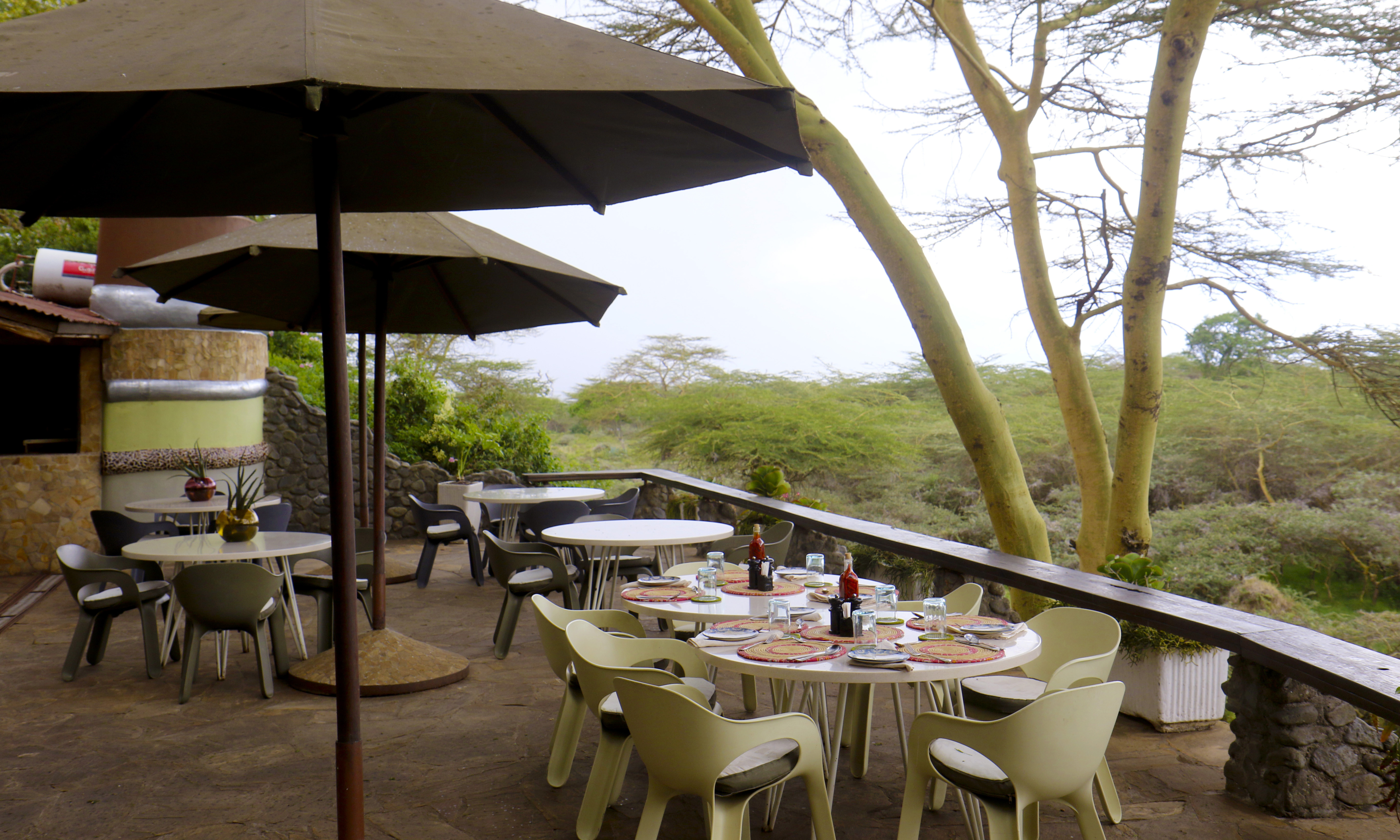 Etter en svett formiddag under en brennhet sol rett sør for ekvator, triller vi etterhvert inn til Hatari Lodge for en velfortjent middag.