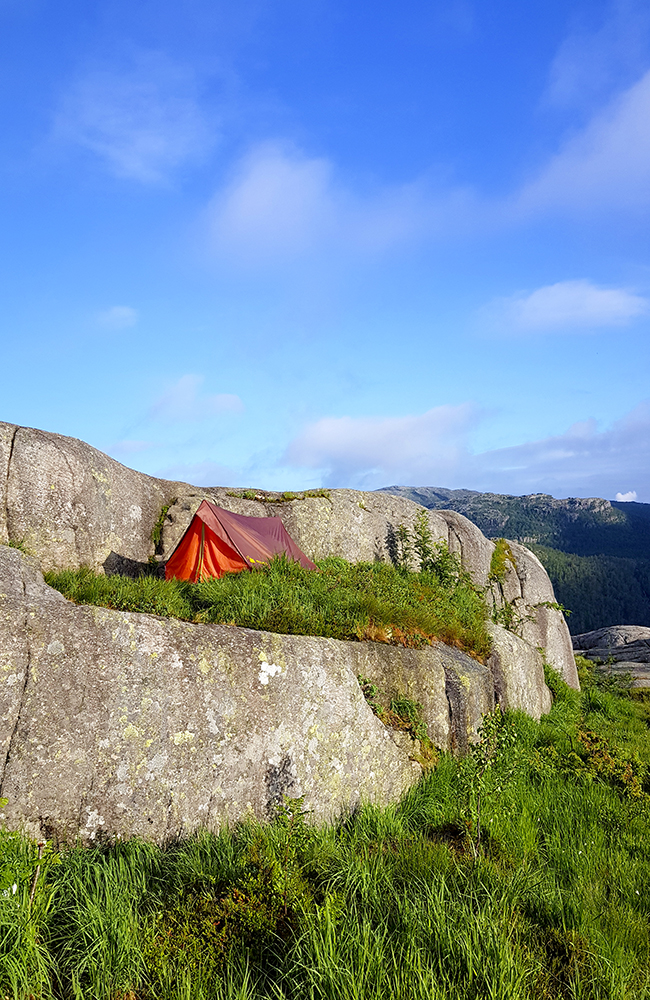 Telttur på Preikestolen er en opplevelse utenom det vanlige. Men husk, det er ikke lov å sette opp telt på selve platået. Foto: Mari Bareksten
