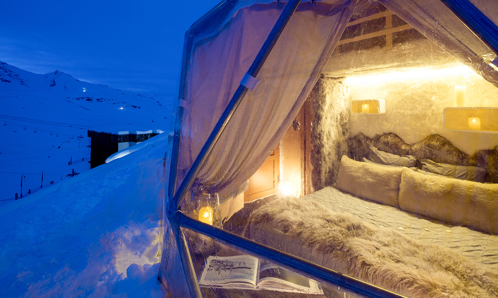 Det er uendelig med overnattingsmuligheter. Hotel Le Pashmina er det nyeste 5-stjerners hotellet i Val Thorens, og en ekte perle! For en uforglemmelig natt i ekte glampingstil er det bestå sjekke inn i et av de to igloteltene som står plassert på hotellets takterrasse.