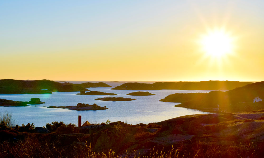 I horisonten ser vi det karrige landskapet som den svenske vestkysten er så kjent for, med bittesmå øyer og holmer.