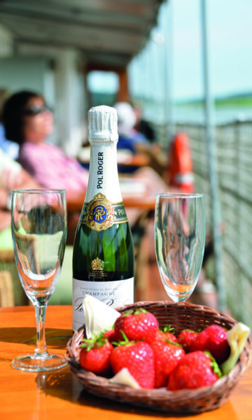 Båten Juno er kanskje 140 år gammel, men det er ikke noe umoderne liv om bord. Her venter jordbær og champagne, dans på dekk og late dager med en god krimbok. Foto: Ronny Frimann