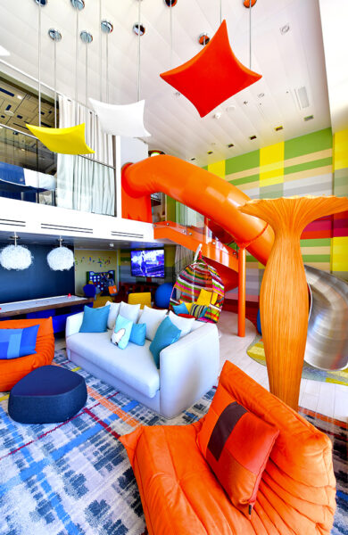 Lær å surfe på kunstige bølger, kjør verdens lengste zipline til havs, lek i ballbingen, utfordre deg selv i den 12 meter høye klatreveggen, spill minigolf, skyt en fiende i det nyvinnende laserspillet eller gå inn gapet på bunnfisken fra Nemo i the The Abyss på dekk 16. og kom ut 70 høydemeter og 10 dekk lavere – dette skipet er designet for aktive gjester (ikke bare barn). De vannglade får også sitt, med tre store sklier på dekk, barnebasseng, og to mindre basseng på dekk – i tillegg til en rekke boblebad. Det er rett og slett umulig å kjede seg om bord.