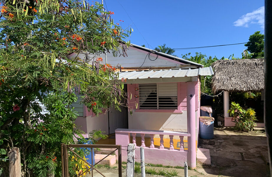 Så bærer det av sted i en Safaribuss mot Coconut Cove som ligger en god kjøretur gjennom byen og ut på landsbygda. Det ble en skikkelig heisatur på humpete veier, som guiden vår sa: Vær klar for en skikkelig rompemassasje. Det blåste også veldig i dag, men en sånn deilig varm vind, så vi nøt turen som tok omtrent en time. Vi kjører forbi herlige fargerike hus med kuer, geiter og høner i gatene.