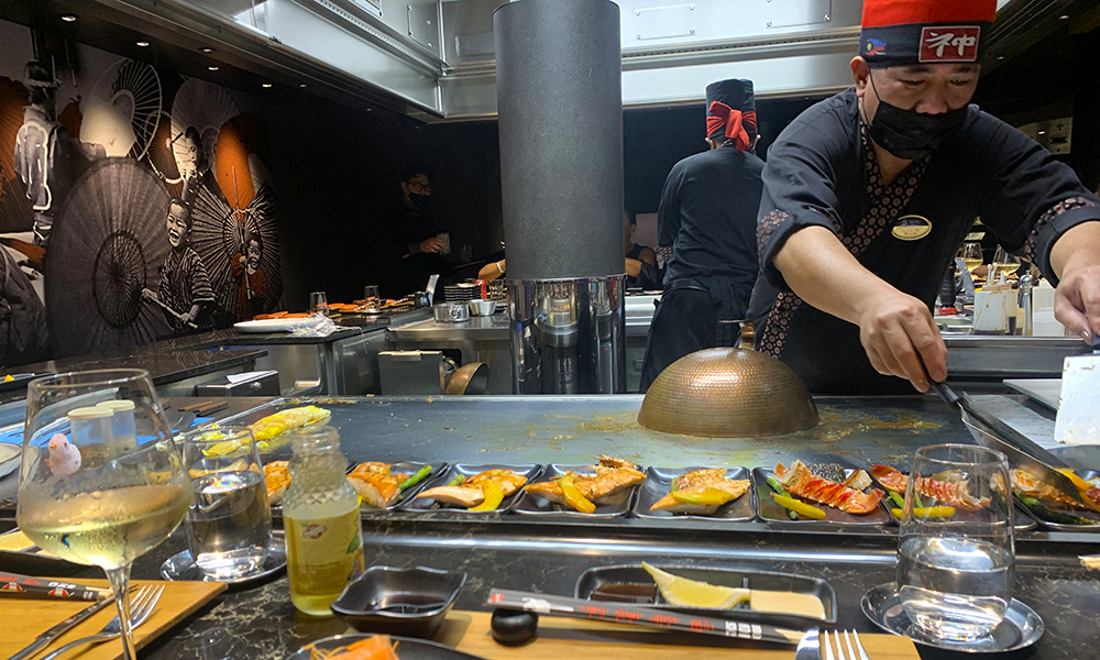 På skipet er det fem forskjellige restauranter med ulike temaer som man kan booke bord på. I dag testet vi Kaito Teppanyaki.
