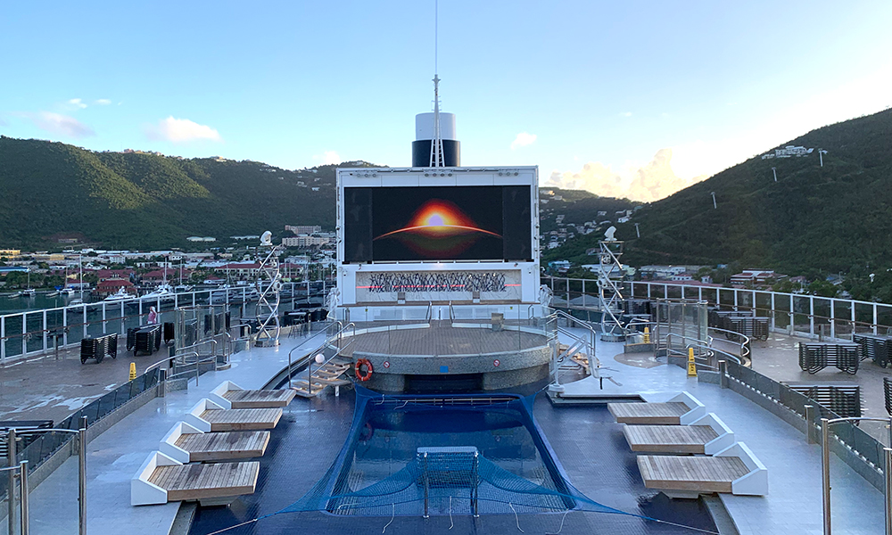 Dagen avsluttes med et deilig bad i boblebadet på toppen av skipet og god mat i restauranten. Vi er trøtte og fornøyde etter nok en dag med masse nye inntrykk, varme og vind. I morgen er vår siste dag, og den tilbringes ute på havet på vei mot Miami.