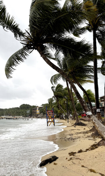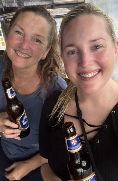 Vi reiste videre til området West Bay, kjent for sin fine sandstrand. På grunn av været ble det dessverre ingen soling eller bading på oss, men vi tok turen innom strandbar med utsikt over havet, for å gjemme oss litt fra regnet. Her fikk vi prøvd en av de lokale ølene og vi hadde en god prat med de lokale som jobbet der. På vei tilbake til taxien så mamma sin første bananplante og ble veldig giret. Det er utrolig gøy å kunne oppleve disse tingene sammen som mor/datter og vi storkoste oss hele dagen.