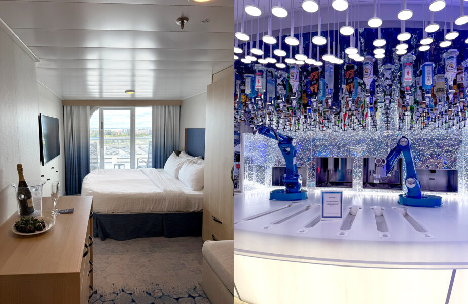 Etter et par glass i solnedgangen var vi veldig giret på å utforske dette gigantiske skipet som skal være vårt hjem den kommende uken. Å gå rundt på skipet føltes som en helt ny verden og det var vanskelig å tro at vi faktisk var ombord på et skip. Vi tok turen til “Royal promenade” hvor flere restauranter, barer og butikker ligger. Her finner man “Bionic Bar”, en bar med roboter som bartendere! Dette måtte vi selvfølgelig teste ut og det var en opplevelse i seg selv å se på når robotene mikset drinkene våre.