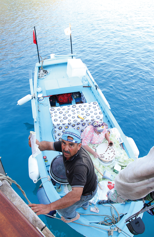 Fire dager går alt for fort på sjøen. Fiskelandsbyen Kas – med sitt imponerende amfi og avslappende sentrum – vies en hel ettermiddag, før vi jakter på en ny, rolig havn uten lys eller larm. Fersk fisk grilles på dekk: Dette er kapteinens middag!