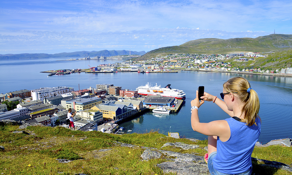 Selv om mange av stoppene er veldig korte, gjerne bare en halvtime for å losse av og på, er det flere muligheter for å gå tur – som her utenfor Hammerfest. Foto: Ronny Frimann