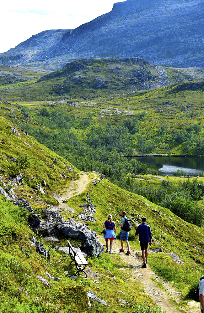 Hammerfest ligger på breddegrad med Sibir, så at utlendinger synes dette er eksotisk kan vi godt forstå. Men takket være Norges beliggenhet ved sjøen og Golfstrømmen, er klimaet en god del mer gjestmildt. I hvert fall i dag, hvor vi kan vandre i shorts og t-skjorte.