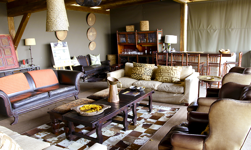 Teltene er som førsteklasses hotellrom, men med vegger av seildukstoff, barduner av trestokker og interiør inspirert av savannens farger og former. Her er innlagt vann, badekar og toalett – og fellesområder med basseng, bar og bålplass.