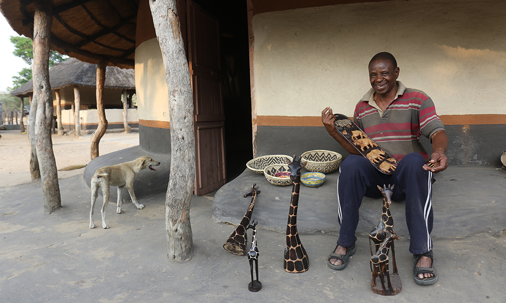 Den fattige landsbyen Ngamo nyter godt av besøk fra safarigjester som kommer for å oppleve det virkelige Afrika, blant annet gjennom salg av pyntegjenstander. Johnson Ngube (62) er høvding i landsbyen. Foto: Runar Larsen