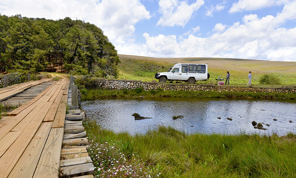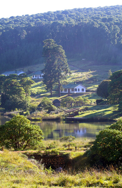 Gresskledde høyder bølger helt ut mot horisonten. Vi trenger ikke en gang gå ut av døra fra trehusene for å nyte synet av elegante gaseller og gressende sebra. Pinjeskogen som ble plantet her da britiske koloniherrer ønsket å utvinne tømmer for papirproduksjon tidlig på 1900-tallet skjuler også en av verdens mest majestetiske skapninger.