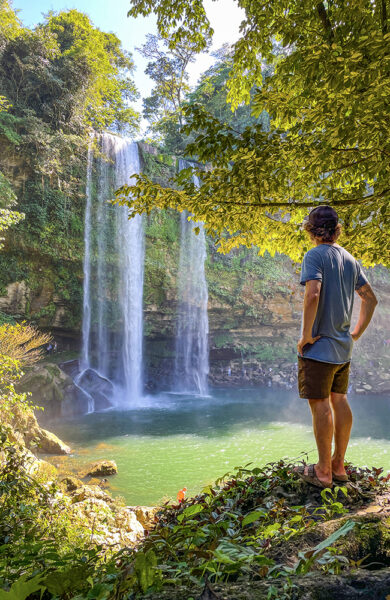 Mexico viste seg langt mer variert og spennende enn det vi hadde sett for oss da vi la ut på bilturen. Det er derfor med blandete følelser vi snart skal forlate landet og krysset grensen over til Guatemala. Men først stifter vi bekjentskap med noe av en overraskelse. Chiapas er Mexicos kanskje best kulturelt bevarte og avsidesliggende region. Store områder av delstaten har siden midten av 1990-tallet blitt kontrollert av en opprørsgruppe kalt Zapatistene, som etter hva vi forstod ønsker selvstyre og å bevare naturen slik som gudinnen Pachamama (Moder jord), har skapt den. Chiapas er uansett en naturperle, med dype daler, spektakulære fossefall og kanskje de vennligste menneskene vi møtte på hele reisen. I tillegg er det svært langt mellom turistene. Ofte kan vi slå opp teltene ved fossefall og ta naturlige dusjer i dem helt alene om morgenen.