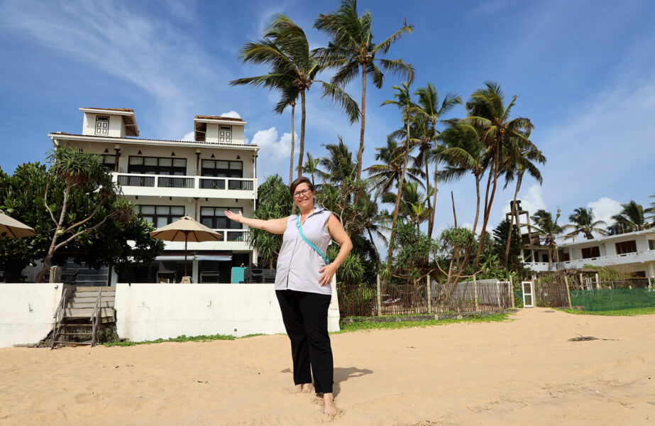 – Velkommen til paradis, smiler Merete Lund mens hun spaserer barbeint langs den gylne sandstranda foran hotellet At Ease Beach Hotel i Hikkaduwa sørvest på Sri Lanka.