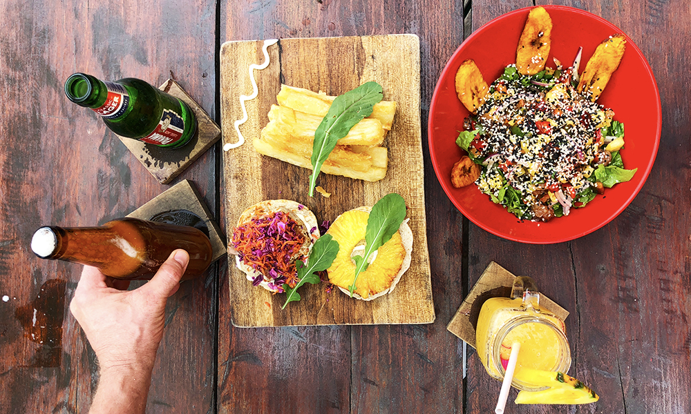 Argentinske Manuel Guervaro og panamanske Betina Pasqualone serverer oss verdens nydeligste (og som sedvanlig – fargerike) plantain- og tunfisksalat og en hamburger Kiosco Diablo-gutta skal slite med å beseire. Mange av restaurantene i Bocas del Toro har fokus på rawfood og sunne ingredienser, og råvarene er så langt det lar seg gjøre, lokale.