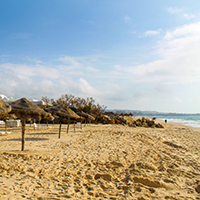 Vi kjører forbi noen av Tunisias mange olivenlunder, Atlasfjellene kan skimtes i det fjerne og mandeltrærne står i full flor med hvite og rosa blomster. Det er ikke noen tvil – vi er i den frodige delen av landet nå, og det virker som det blomstrer mer og mer jo nærmere Middelhavet vi kommer. Veien går opp en liten åsside, og blant sitrus- og eukalyptus trær titter små hvite og blå hus frem, hengende i bergveggen med utsikt over det turkisblå Middelhavet nedenfor.