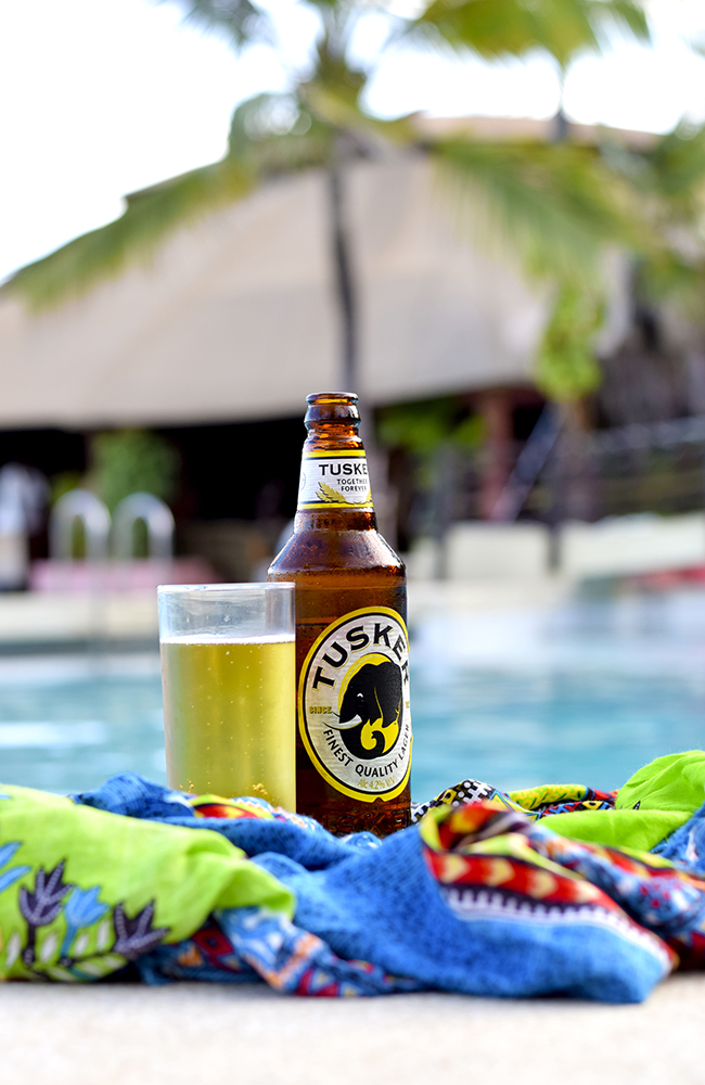 Vi tar turen til den legendariske strandbaren, lengst sør på stranda. Store strålounger med myke gule puter er spredt utover stranden i ly av svalende stråparasoller. Den kritthvite sanden går helt inn til bardisken, hvor lokale Tusker er en bestselger.