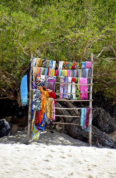 Det er tidlig morgen og den eneste som har kommet seg ned på stranden er en blid dame som selger fargerike saronger med afrikanske mønstre. Ellers har vi foreløpig strandstrekket utenfor Leopard Beach Resort helt for oss selv. Strandhotellet vi har sjekket inn på ligger helt nede ved vannet og har det fiffige slagordet «where leopards meet lobsters».
