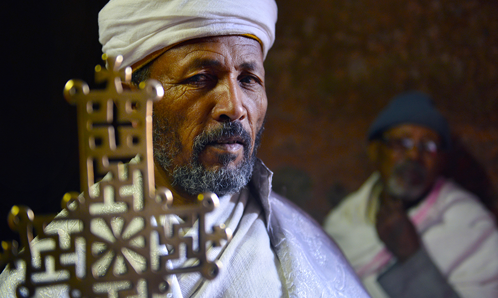 Prester som Mesganawe Tarekegh og hundrevis av pilegrimer sørger for at grottekirkene er langt mer enn bare turistmål. Foto: Gjermund Glesnes
