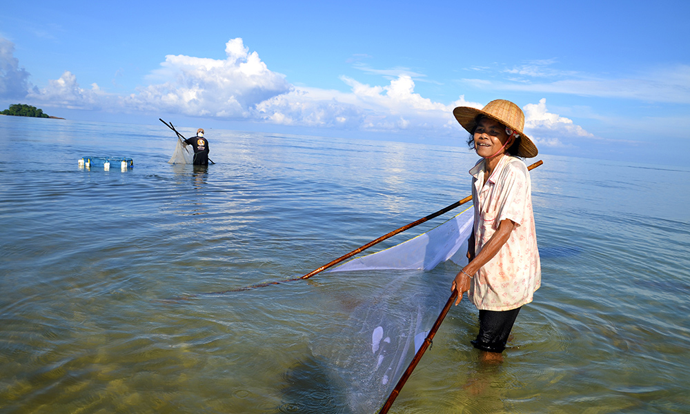 På Koh Chang lar ikke lokalbefolkningen seg affektere av turistene, og gjør unna sin daglige sjømatfangst ved strendene. Foto: Marte Veimo
