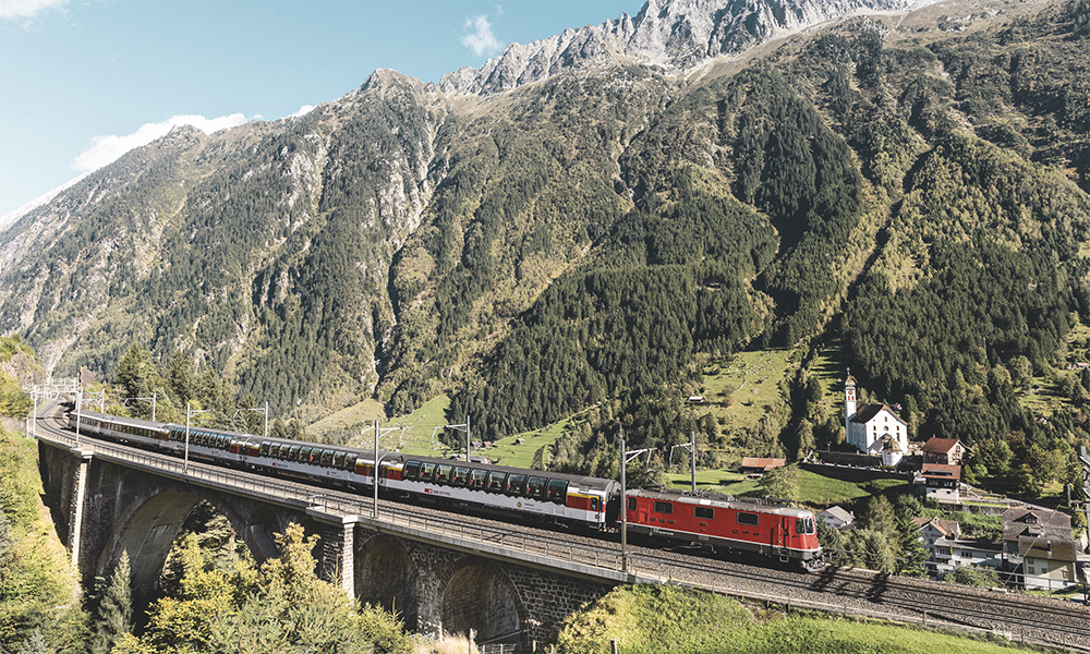 Alle søketjenester tror alltid at vi har det travelt, og fra Zürich til Milano blir vi sendt gjennom verdens lengste og dypeste jernbanetunnel, Gotthard-Basistunnelen. Men om vi vil, kan vi også på denne reiseruten klatre opp i Alpene – på de gamle jernbaneskinnene som fortsatt ligger der. De er i daglig bruk. Ber vi søketjenestene om å få reise via for eksempel Airolo når vi skal fra Zürich til Milano, må vi legge på et par timer ekstra på reisetiden, men vi får samtidig med oss mye mer landskap. I sommersesongen går det også et panoramatog på disse skinnene, The Gotthard Panorama Express mellom Arth-Goldau og Lugano.
