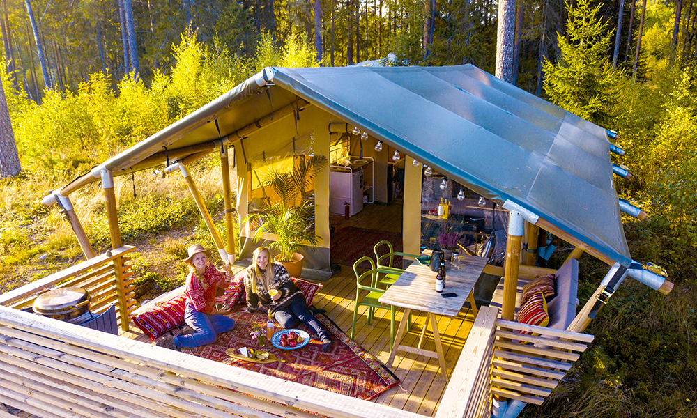 Ettermiddagssolens gylne stråler trenger seg gjennom teltduken og for en liten stund farer tankene til Kenya, Tanzania og Botswana. Selv om omgivelsene tar oss til fjernere strøk, befinner vi oss langt nord for Sahara. For også tradisjonsrike Bø i Telemark byr på eksotiske overnattinger. Safariteltene er en del av Breiva Gjestegård og Glamping, et overnattingssted som omkranser en gammel gård. Rigg dere til på terrassen utenfor teltet med marrokanske puter, mikrobrygg fra Lindheims ølkompani og lokale oster fra Bø – jentetur til bushen i Bø kan være vel så koselig som til en savanne i Kenya.