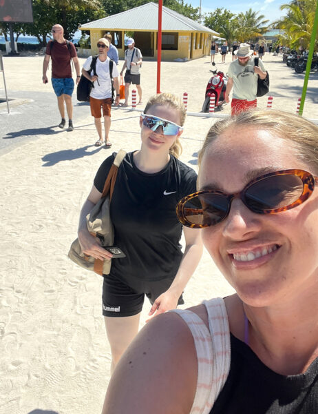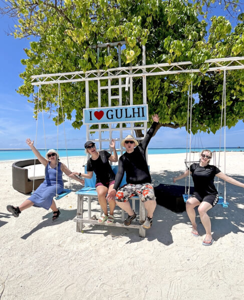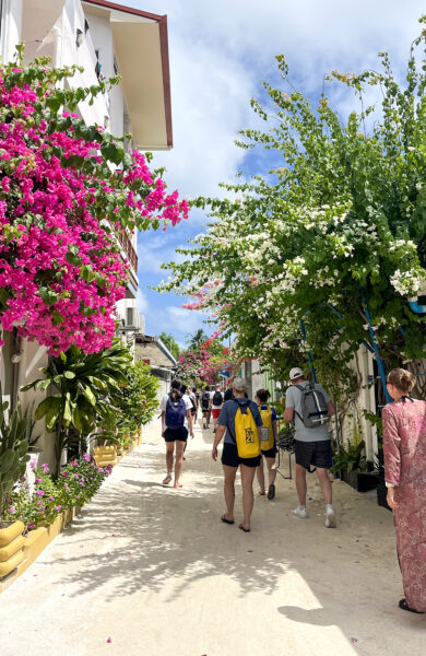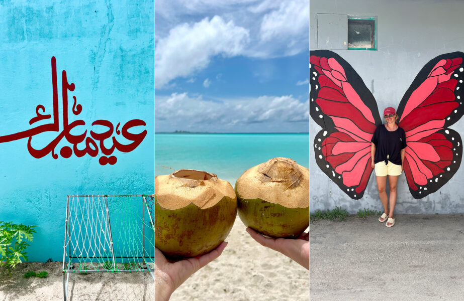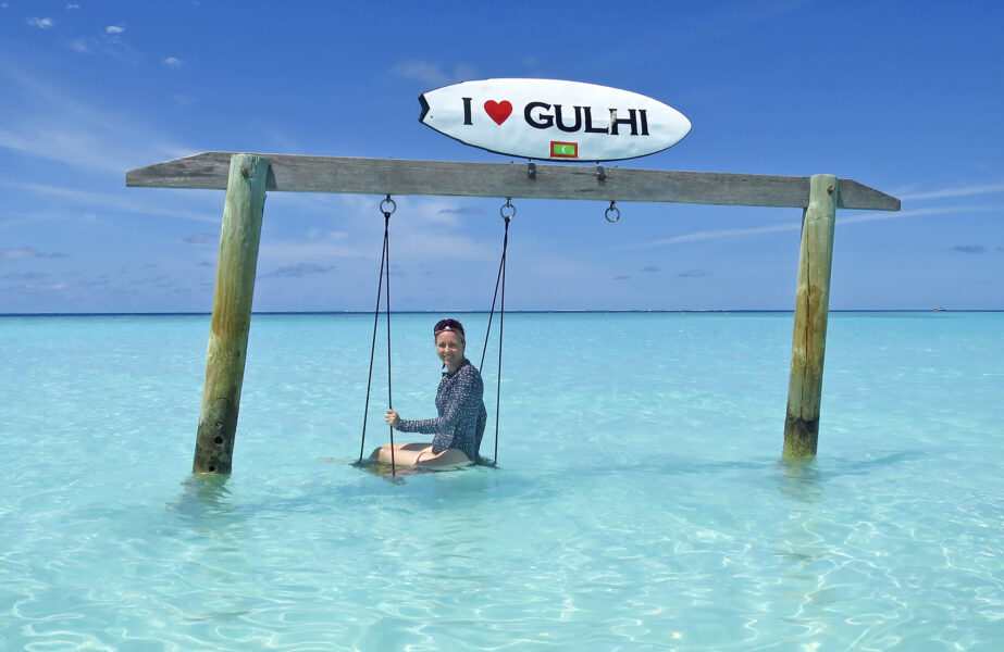 Vi besøkte naboøya Guraidhoo, gikk rundt i de sandfylte gatene med fargerike, små hus og vakre blomster. Vi måtte selvfølgelig innom «bikini beach» her også. En stille og rolig strand med krystallklart vann, palmer og hvit sand.