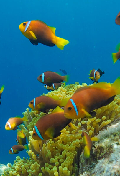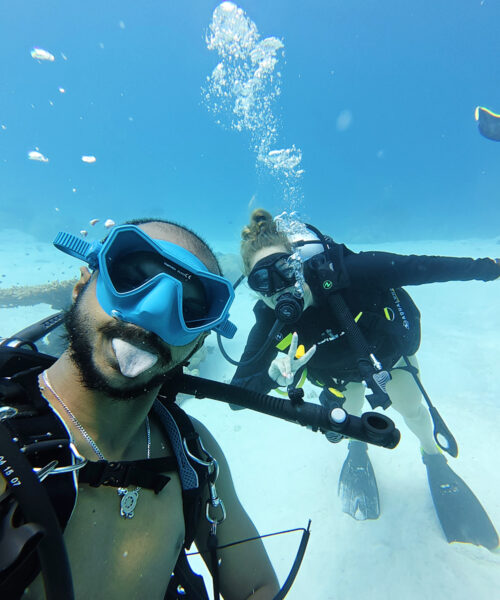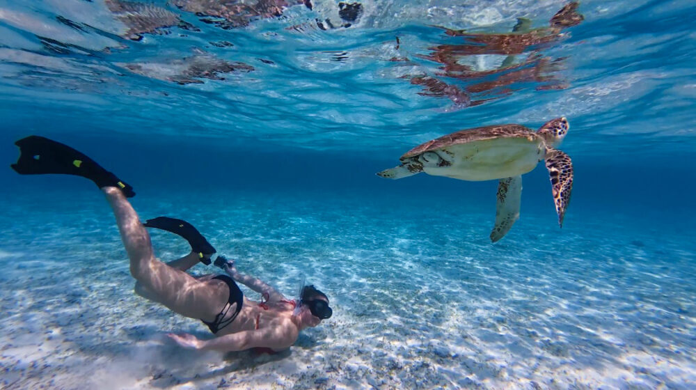 Jeg og to andre fra reisefølget startet dagen med å utforske livet under vann. Vi fikk på oss dykkerutstyret og hoppet uti og under. Det er vanskelig å beskrive den følelsen dykking gir, jeg kjenner på en ro og syns det er ekstra spesielt å få lov til å ta del av en unik verden som eksisterer der nede. Jeg så fisker i alle verdens farger, anemoner, hai og havskilpadder! Det var ekstra spesielt å komme så nære havskilpaddene, de var veldig avslappet rundt oss og jeg fikk svømme ved siden av den ene, som venner på tur!