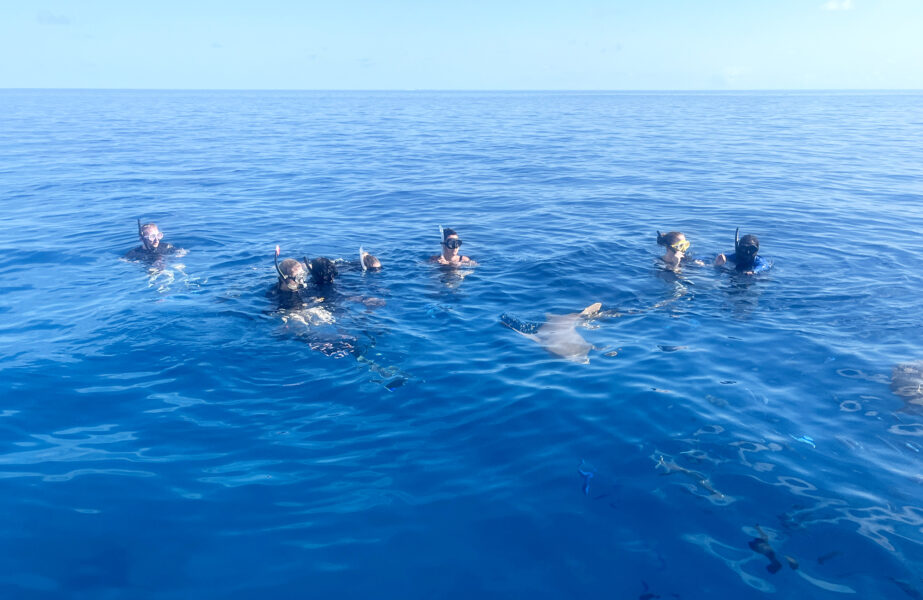 Høye på adrenalin og glede bar det videre på båten, og da vi oppdaget en djevelrokke så var det bare å få på snorkelutstyret igjen og hoppe uti. Det var en ordentlig treningsøkt da denne rokken glir smidig igjennom vannet og vi kjemper som bare det for å holde følge. Men wow, for et dyr, og så kult å få se den så nære!