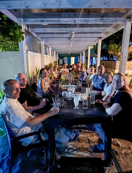 Det var omsider tid for turens siste middag, som var en suksess. Hyggelig selskap, latter og gode samtaler. Turen har gått så altfor fort! Heldigvis har vi hele dagen til å leve «Island life» i morgen også, før det bærer videre til flyplassen og hjemreise.