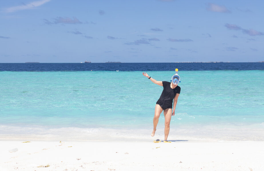 Her tuslet den lille strekningen til «Bikini Beach», som i likhet med Maafushi er den eneste stranden det er lov å bade i bikini på akkurat her. Bader man andre steder må både menn og kvinner dekke seg til i shorts og t-skjorte. Jeg tenker at det er fint at det er likt for begge kjønn og som besøkende er det ekstra viktig å respektere den lokale kulturen. På «resortøyene» hvor det kun er turister, er for øvrig dette ikke en problemstilling.