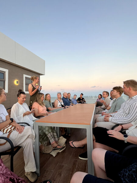 Jeg drar en kjapp tur tilbake på hotellet før jeg møter gjengen til middag på stranda. Det er god stemning rundt bordet, praten flyter og vi går fra å være en gjeng fremmede til nye kjentfolk på null komma niks.
