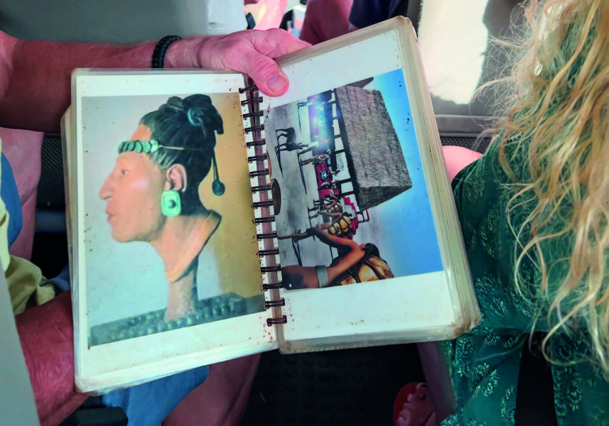 – Og tenk dere, dette området er over 1700 år gammelt. Og se hvordan det var da, sier Hostino entusiastisk og viser frem et bilde av en stor, rødmalt pyramide og en annen i grønne nyanser.