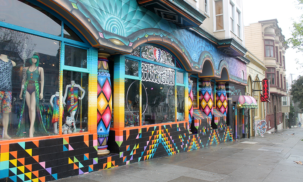 Vil du finne din indre hippie finner du det du trenger i Haight Street. Piedmonte Boutique har vært her i over 40 år, med egendesignede klær, smykker, parykker og kule solbriller. Pipe Dreams, San Franciscos eldste pipebutikk, holder fortsatt koken etter 49 år og har hatt kunder som Jimi Hendrix og Janis Joplin. Amoeba Music har byens, og kanskje verdens, største samling av LP-plater, DVD-er, CD-er og plakater.