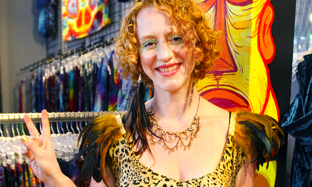 Sunshine «Sunny» Powers er glad i alt som glitrer og blir kalt dronningen av Haight Street. I butikken sin «Love on Haight» selger hun egenproduserte klær i alle regnbuens farger. Foto: Ida Anett Danielsen