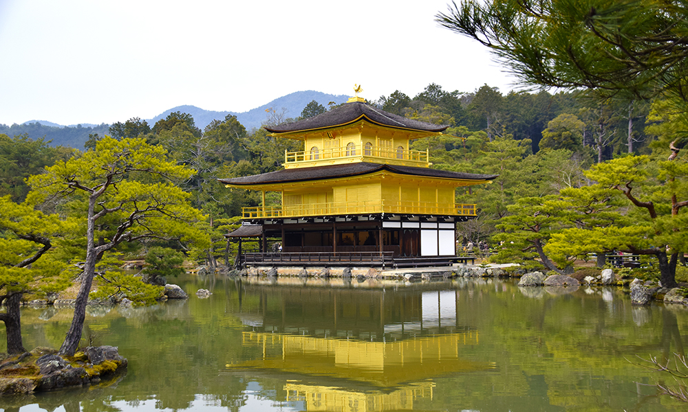 Den billedskjønne storbyen ble grunnlagt i 794, og var landets hovedstad frem til 1868. I løpet av den over tusen år lange perioden vokste Kyoto frem og ble landets kulturelle hovedsete. Det er den fortsatt. Et av de aller mest besøkte stedene er Kinkaku-ji, bedre kjent som Den gylne paviljong. Det forgylte zen-tempelet ligger vakkert til ved en liten innsjø, og refleksjonen skaper et inntrykk av at tempelet flyter på vannet.